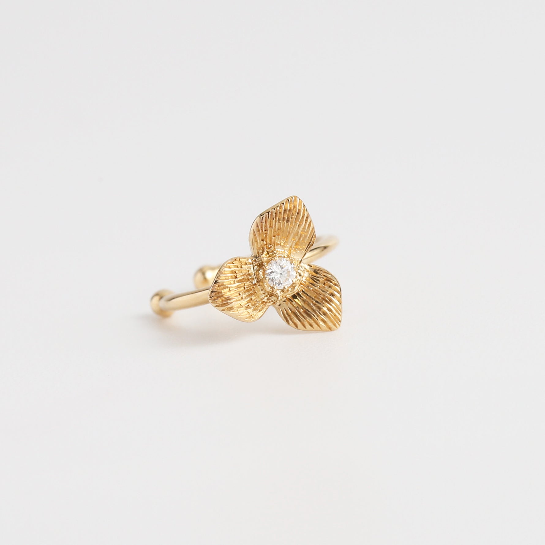 木陰にひっそりと可憐に咲く「エンレイソウ」をモチーフにしたイヤーカフ。その姿は花言葉である「奥ゆかしい美しさ」を映すように、控えめでありながらも凛とした強さを秘めています。