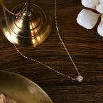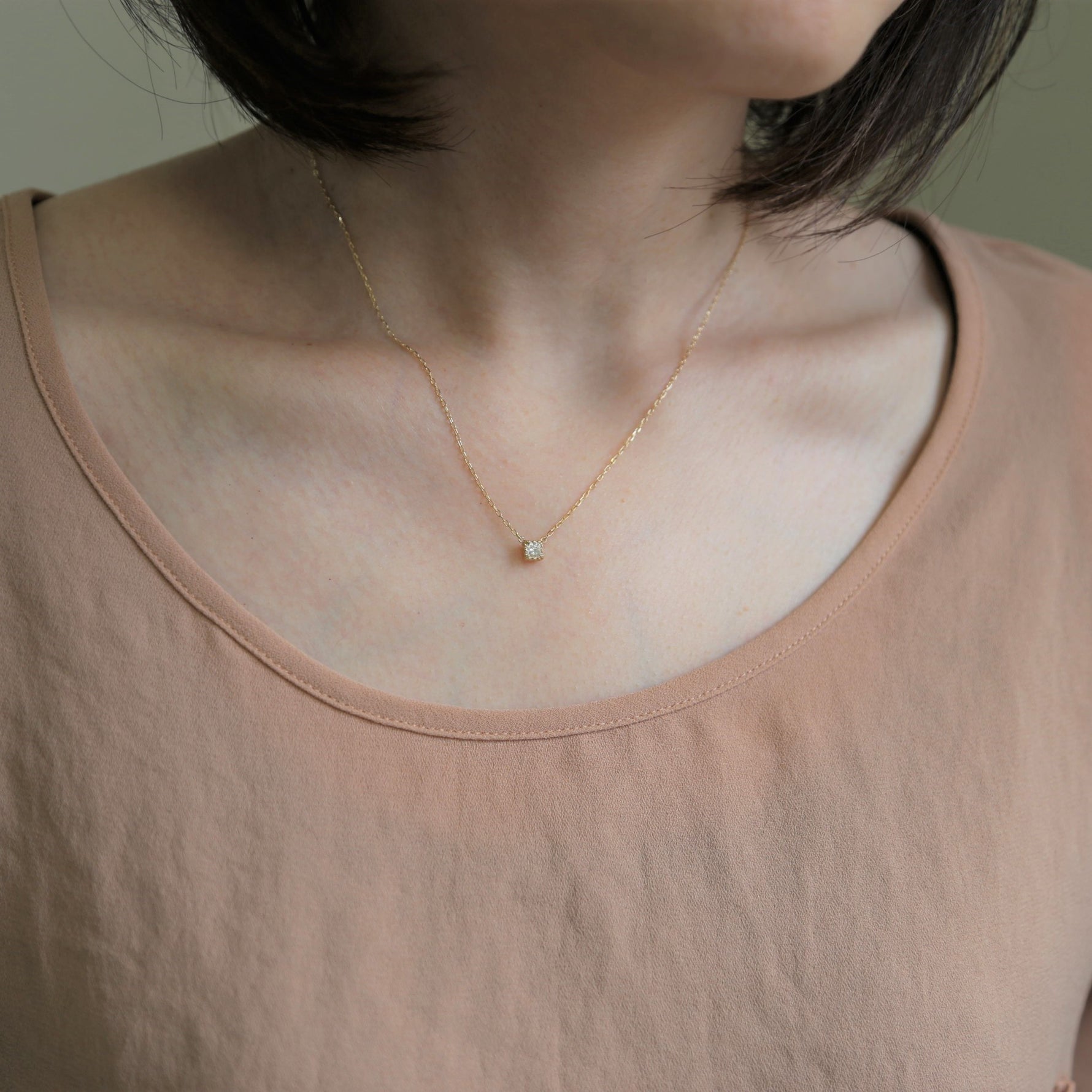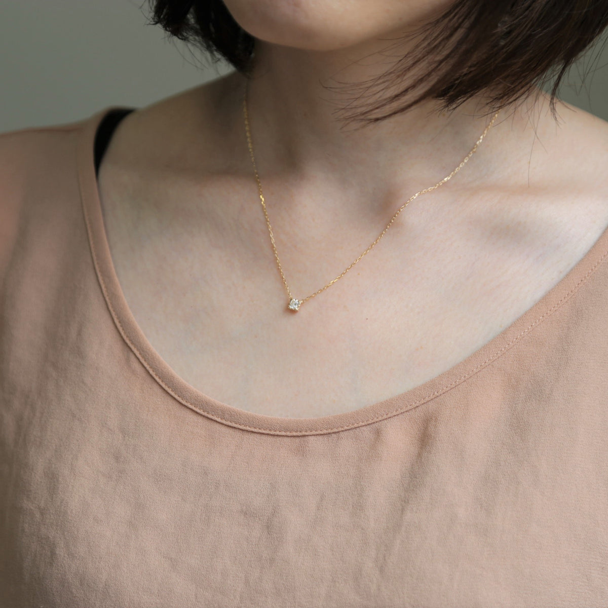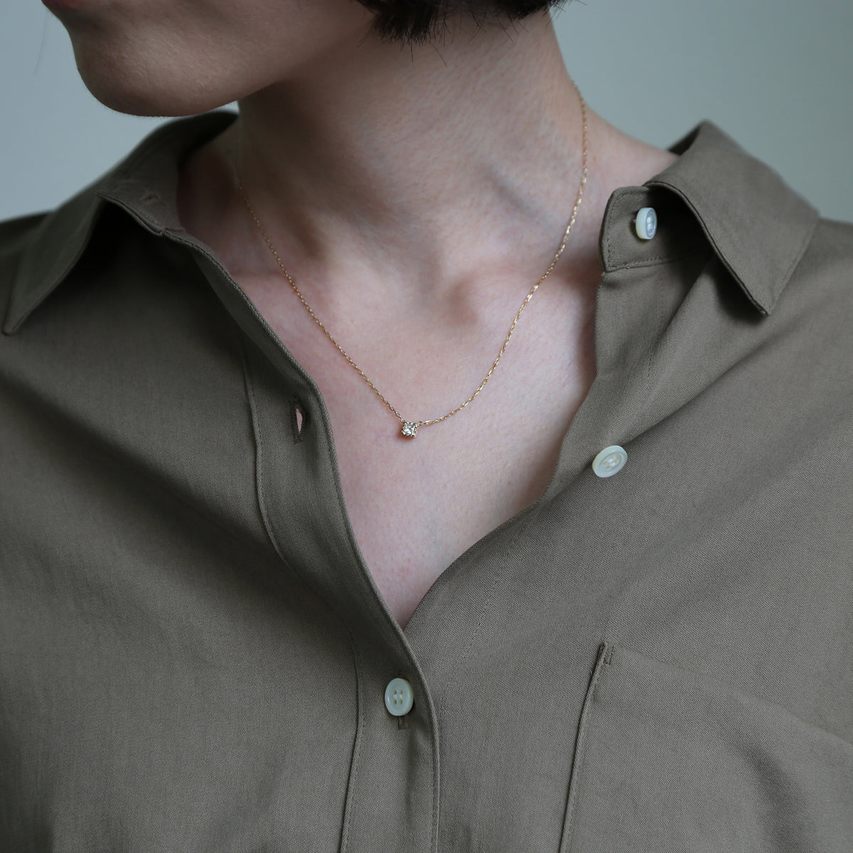 ダイヤモンドの凛とした輝きに、優雅なディテールが加わることで、気品とやわらかさを併せ持つ表情に。小ぶりで上品なサイズ感は日常のコーディネートに自然に馴染みながら、さりげなく胸元を華やかに演出してくれます。オンにもオフにも寄り添い、毎日気負わず楽しめる一粒ダイヤモンドネックレスです。