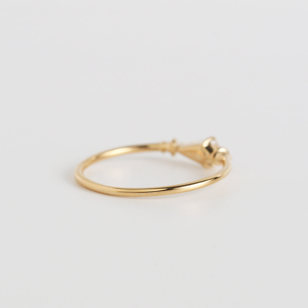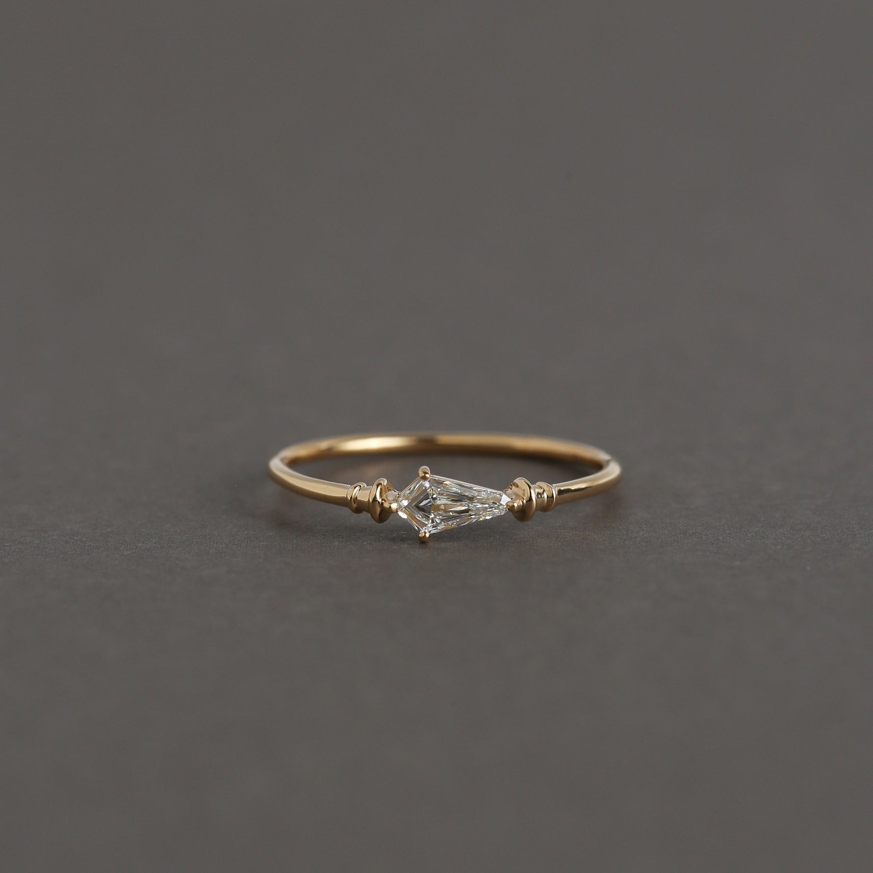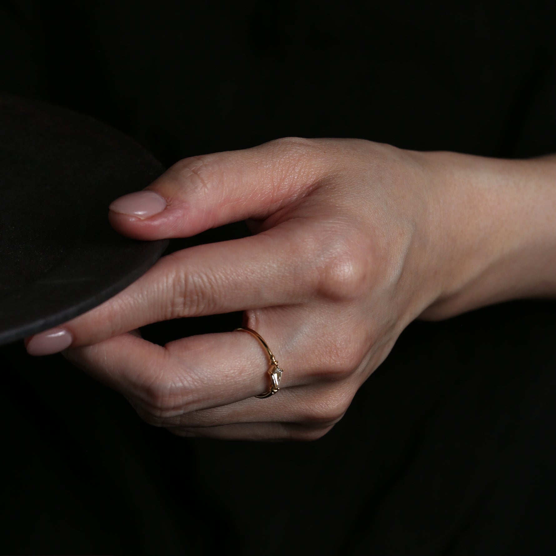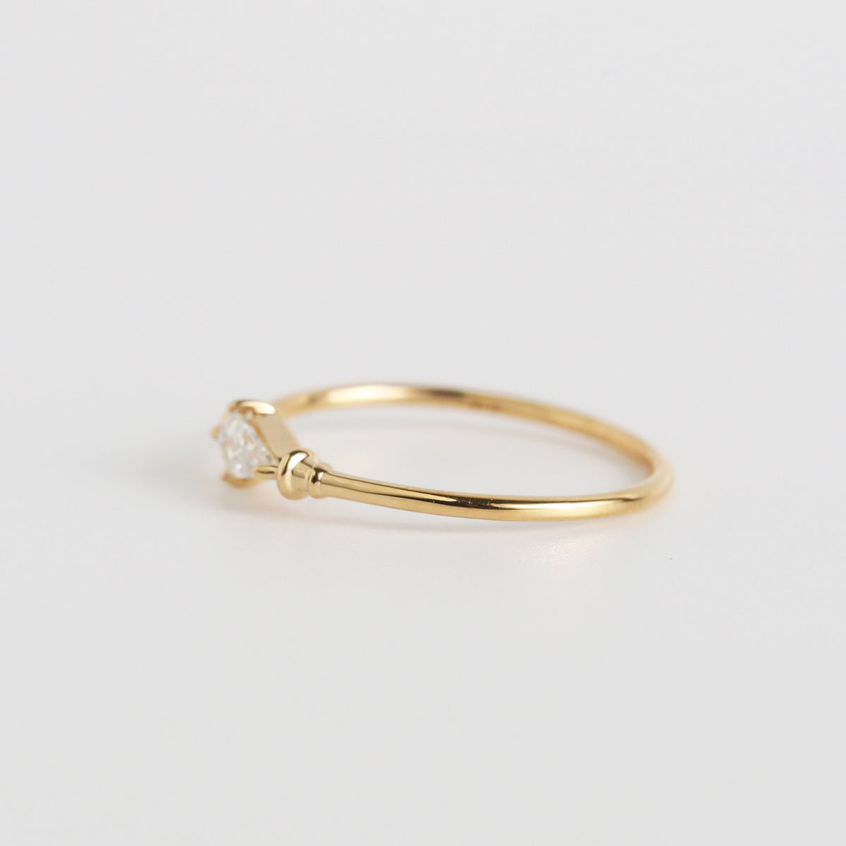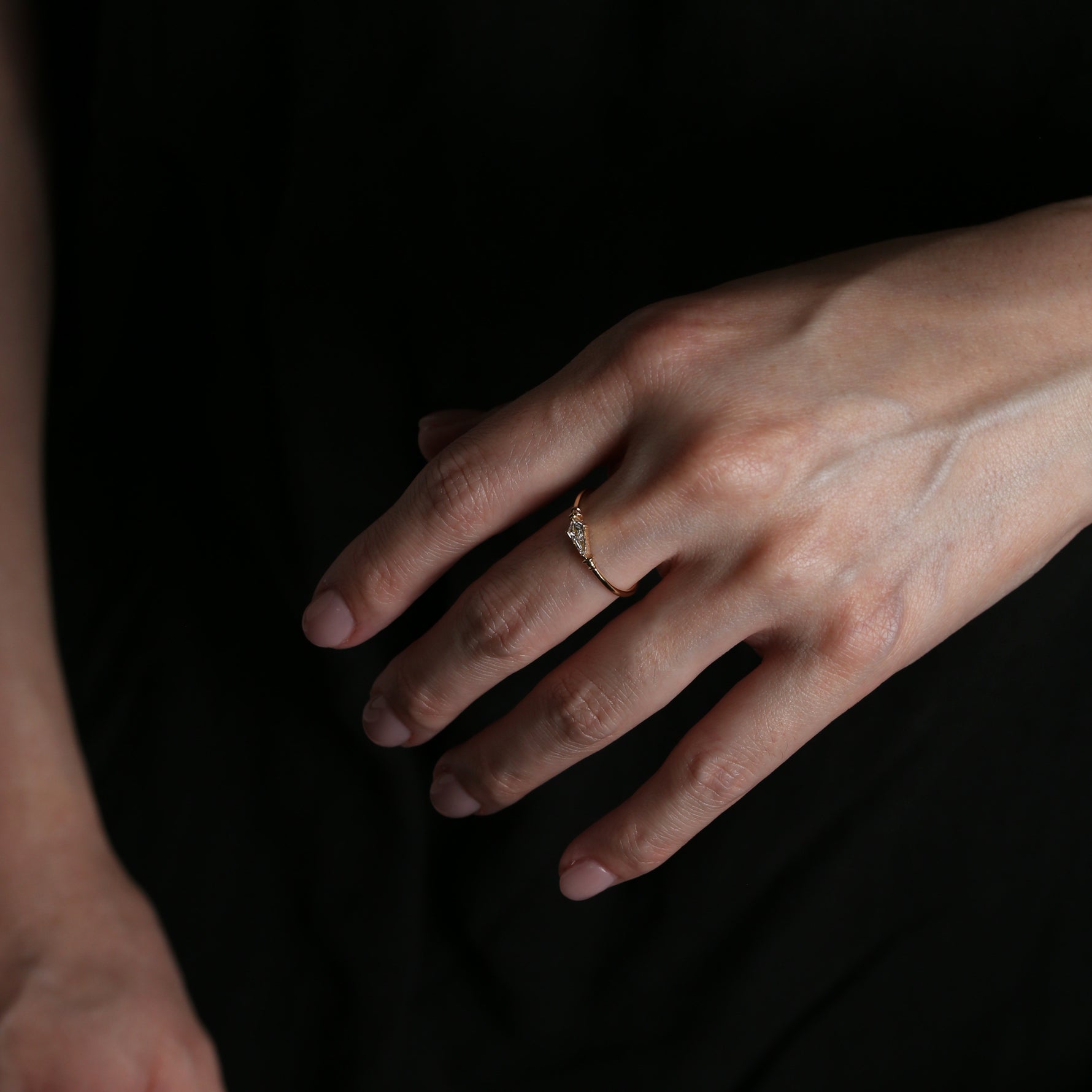 先端には、ひときわ透明度の高いファンシーカットダイヤモンドを。決して派手ではない、それでも確かな存在感。指先に宿る静かな矛先が、日常に凛とした余韻を残す。