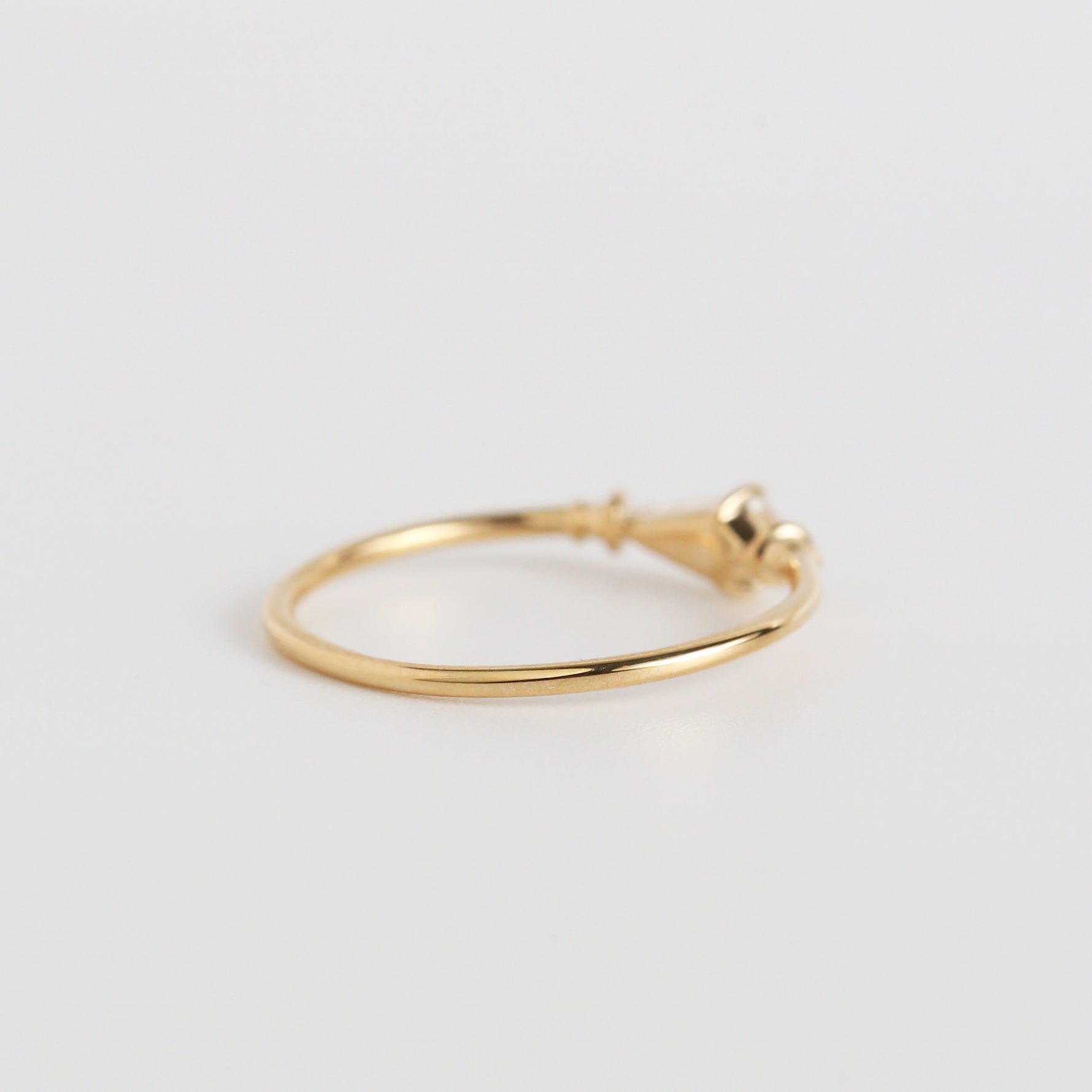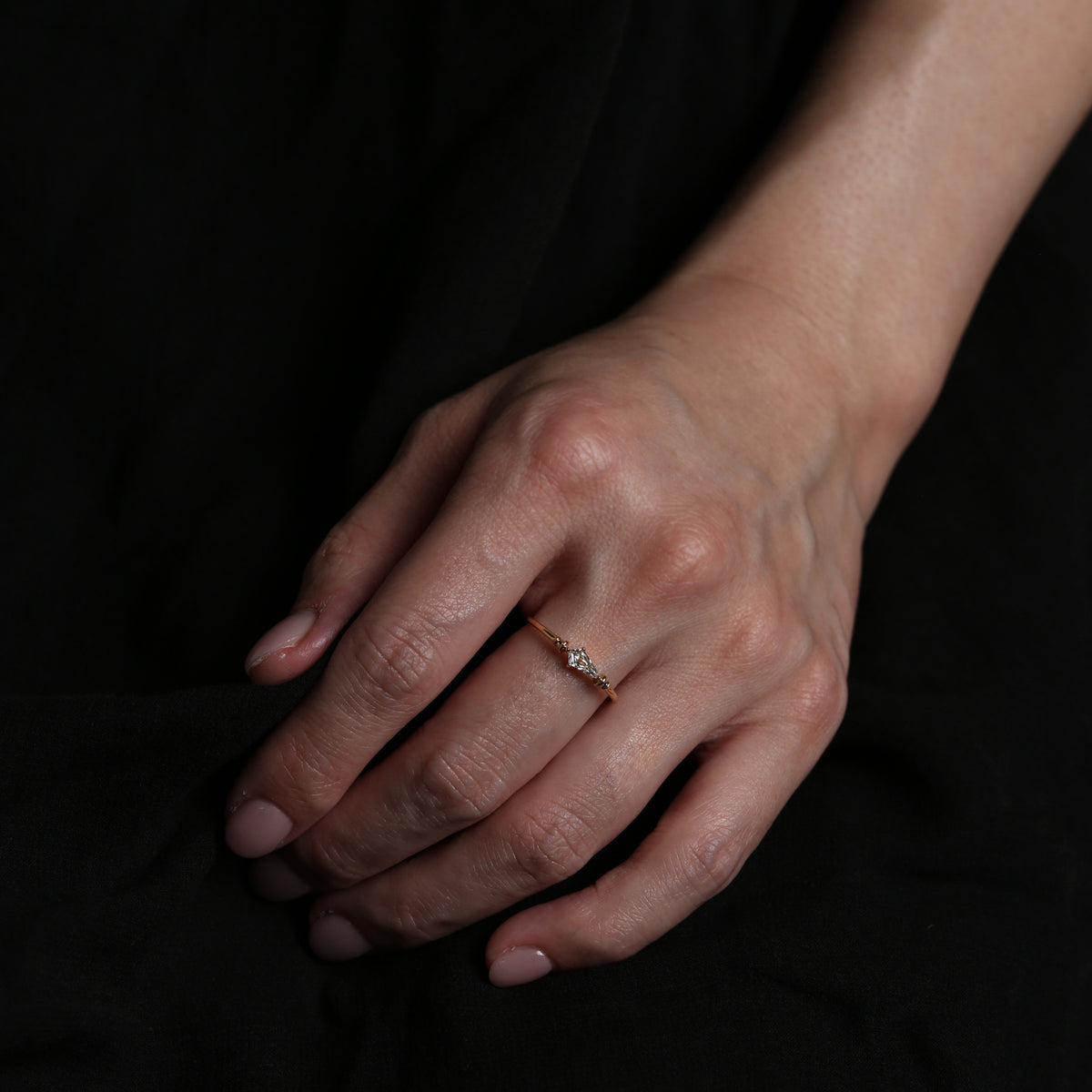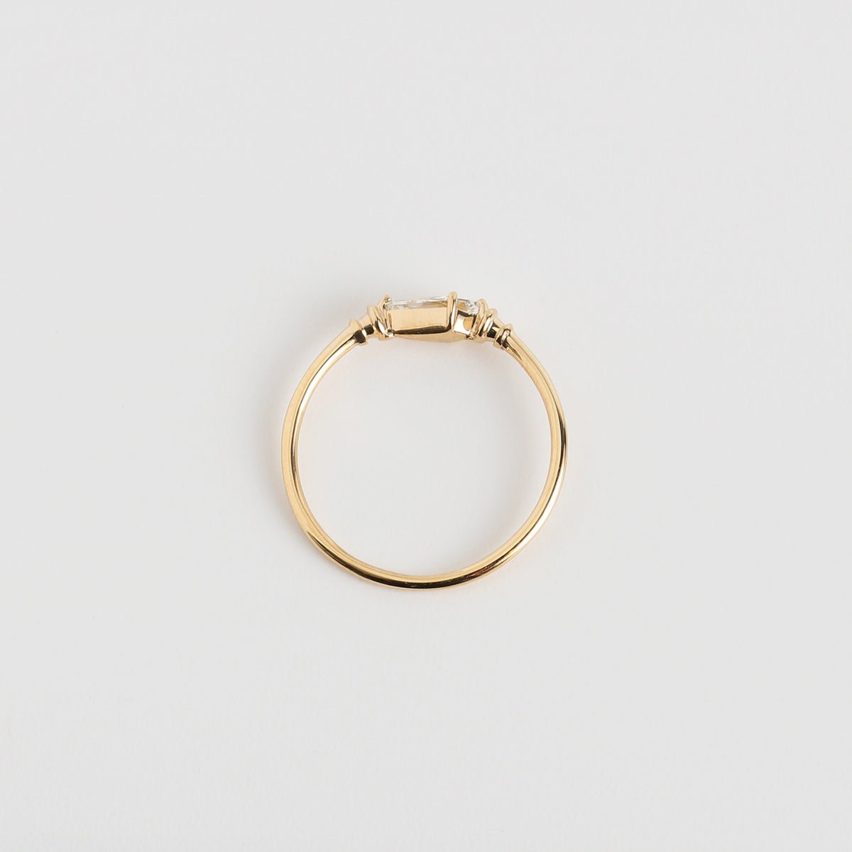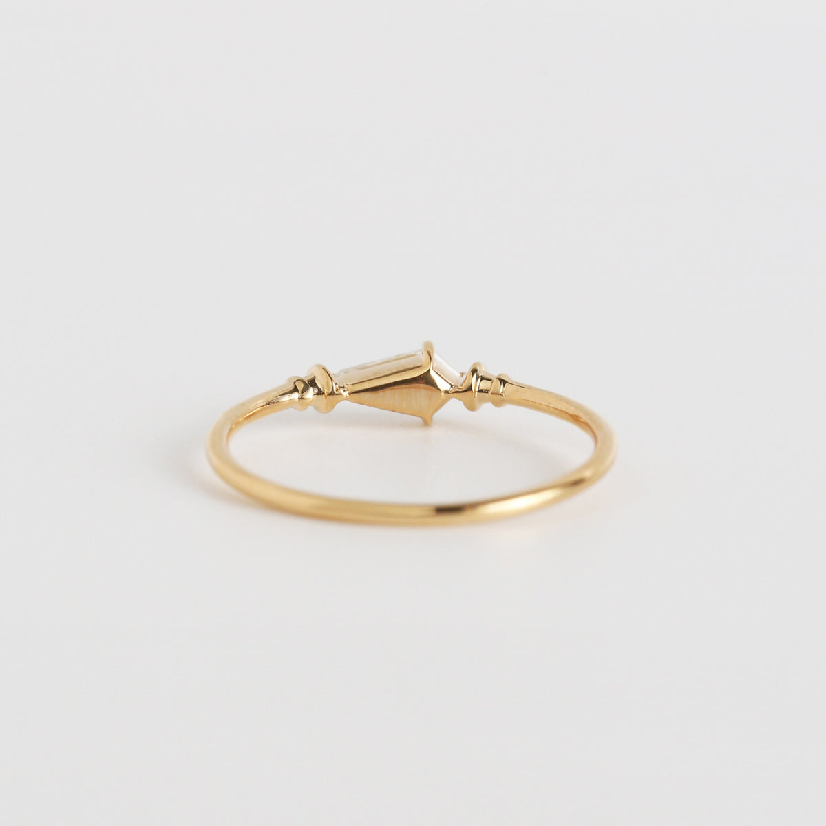 先端には、ひときわ透明度の高いファンシーカットダイヤモンドを。決して派手ではない、それでも確かな存在感。指先に宿る静かな矛先が、日常に凛とした余韻を残す。
