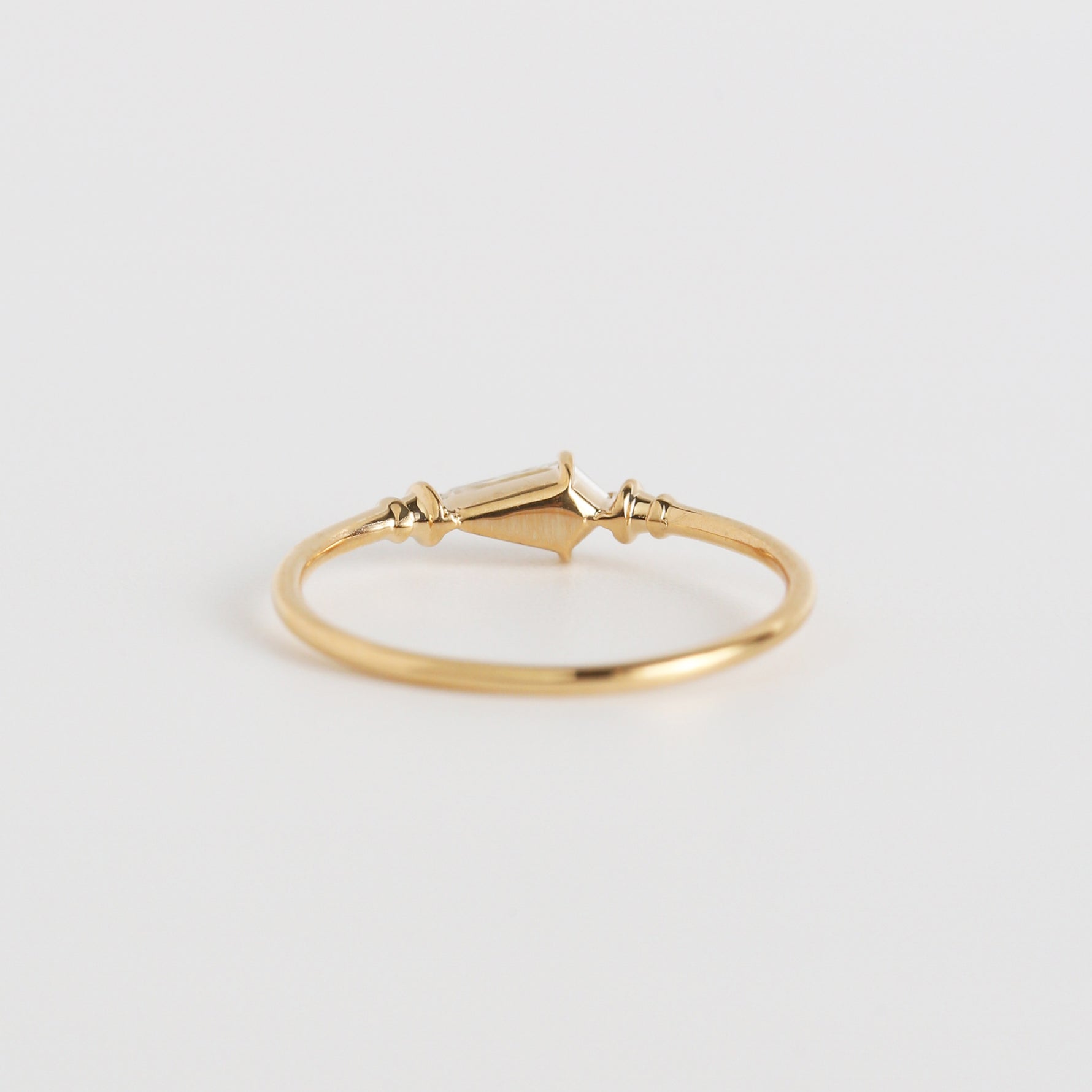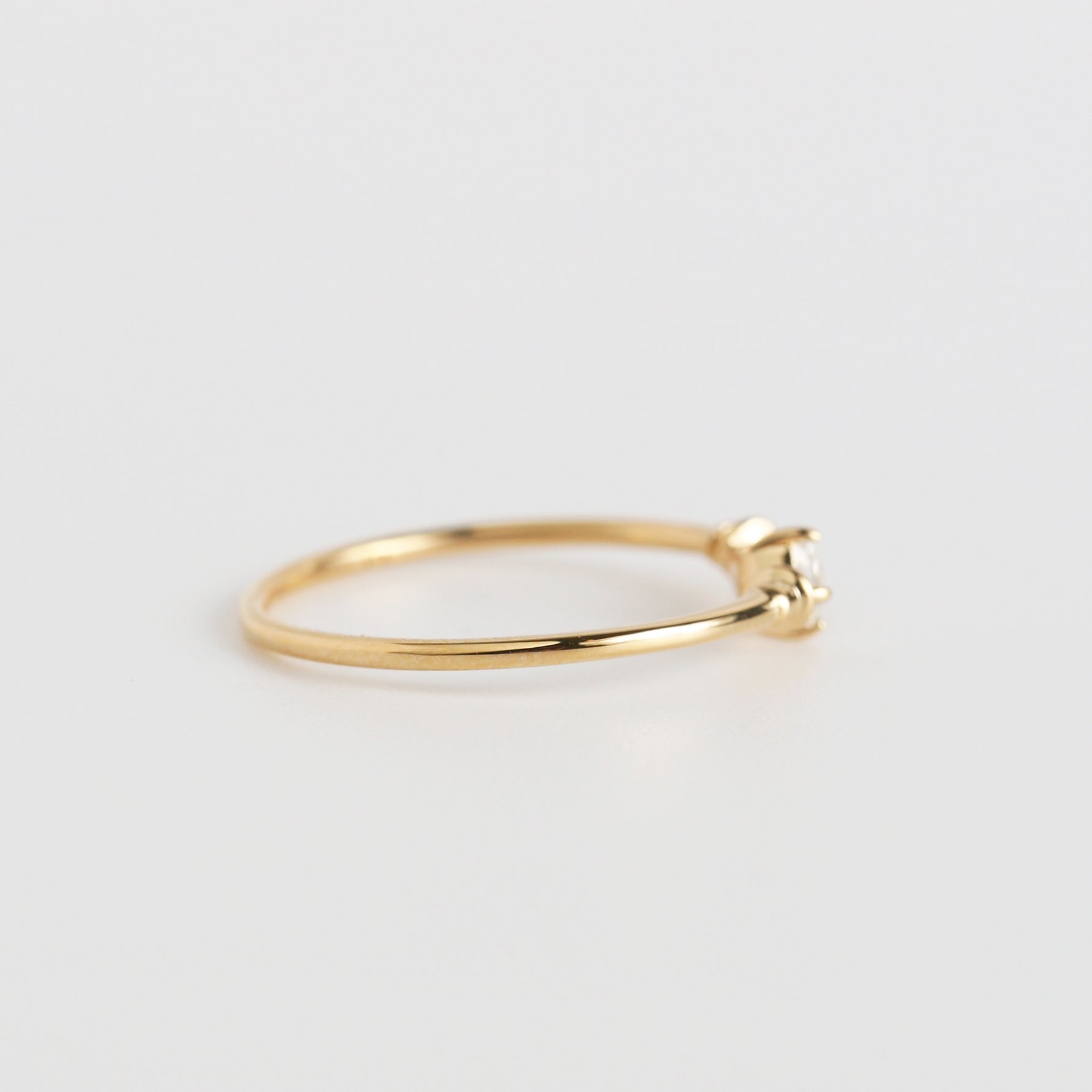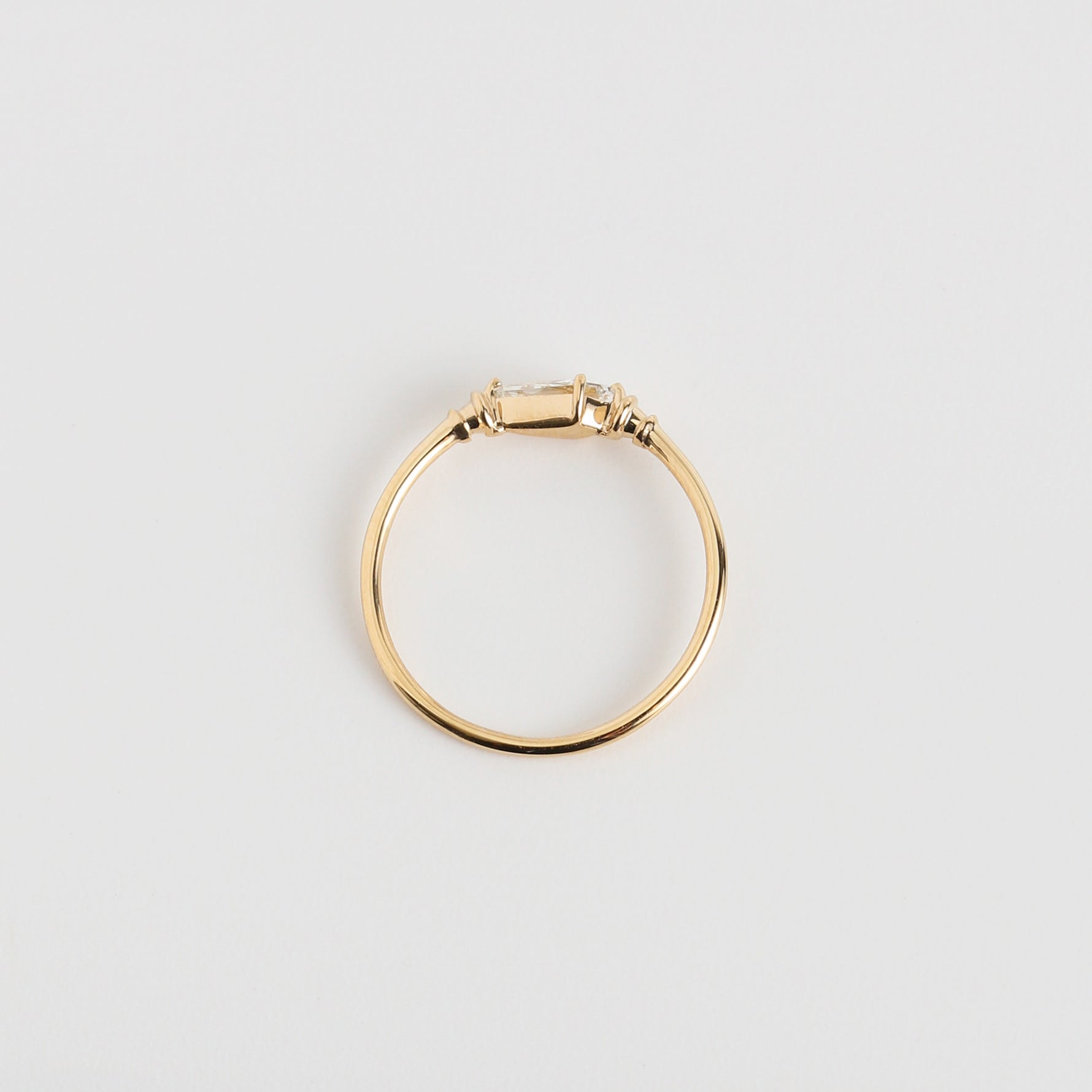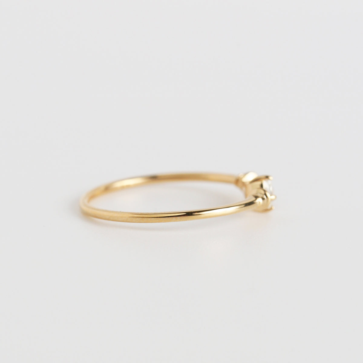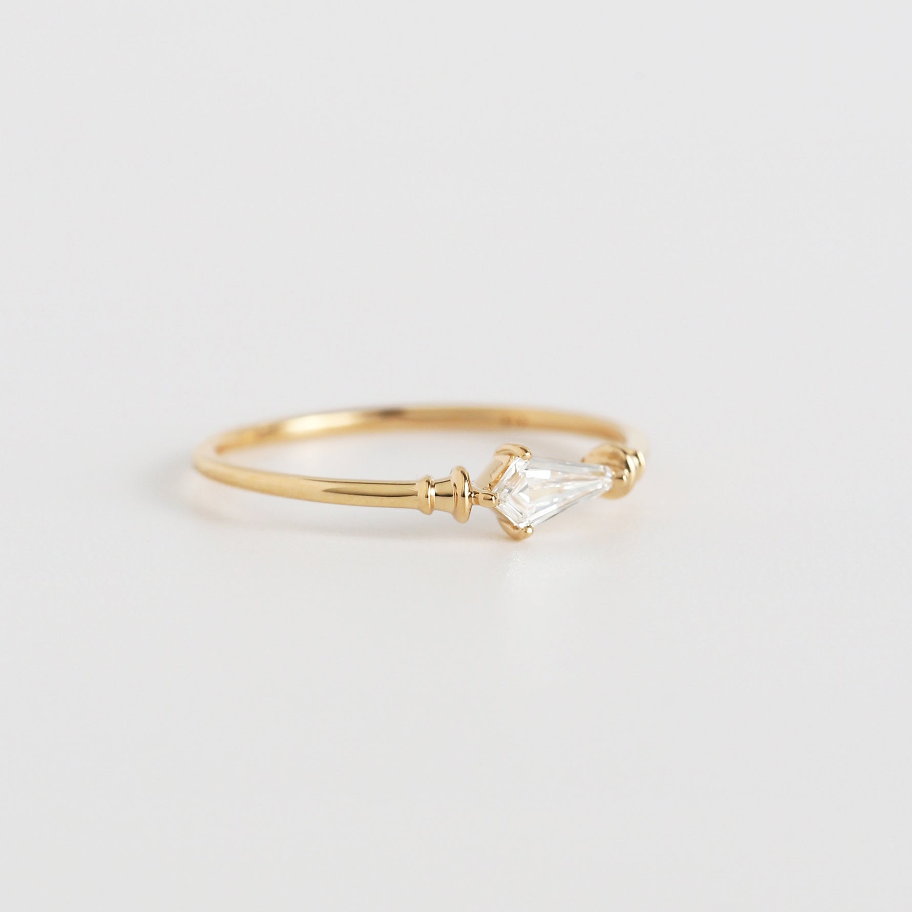 先端には、ひときわ透明度の高いファンシーカットダイヤモンドを。決して派手ではない、それでも確かな存在感。指先に宿る静かな矛先が、日常に凛とした余韻を残す。