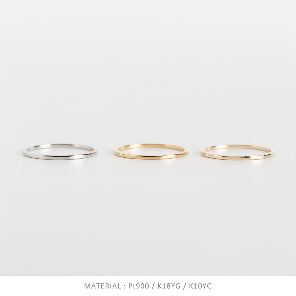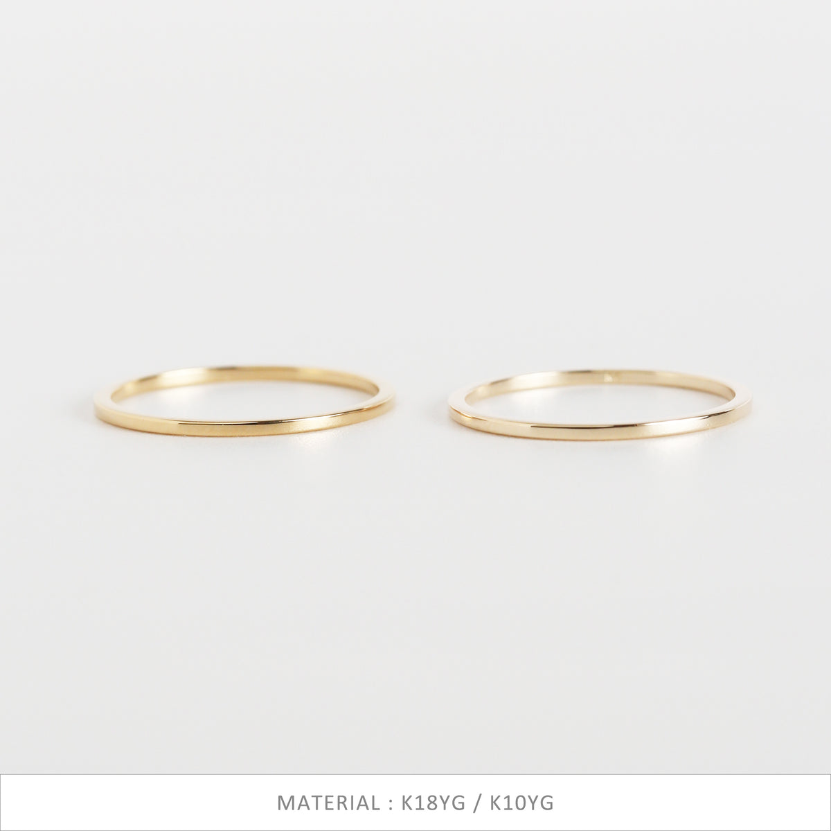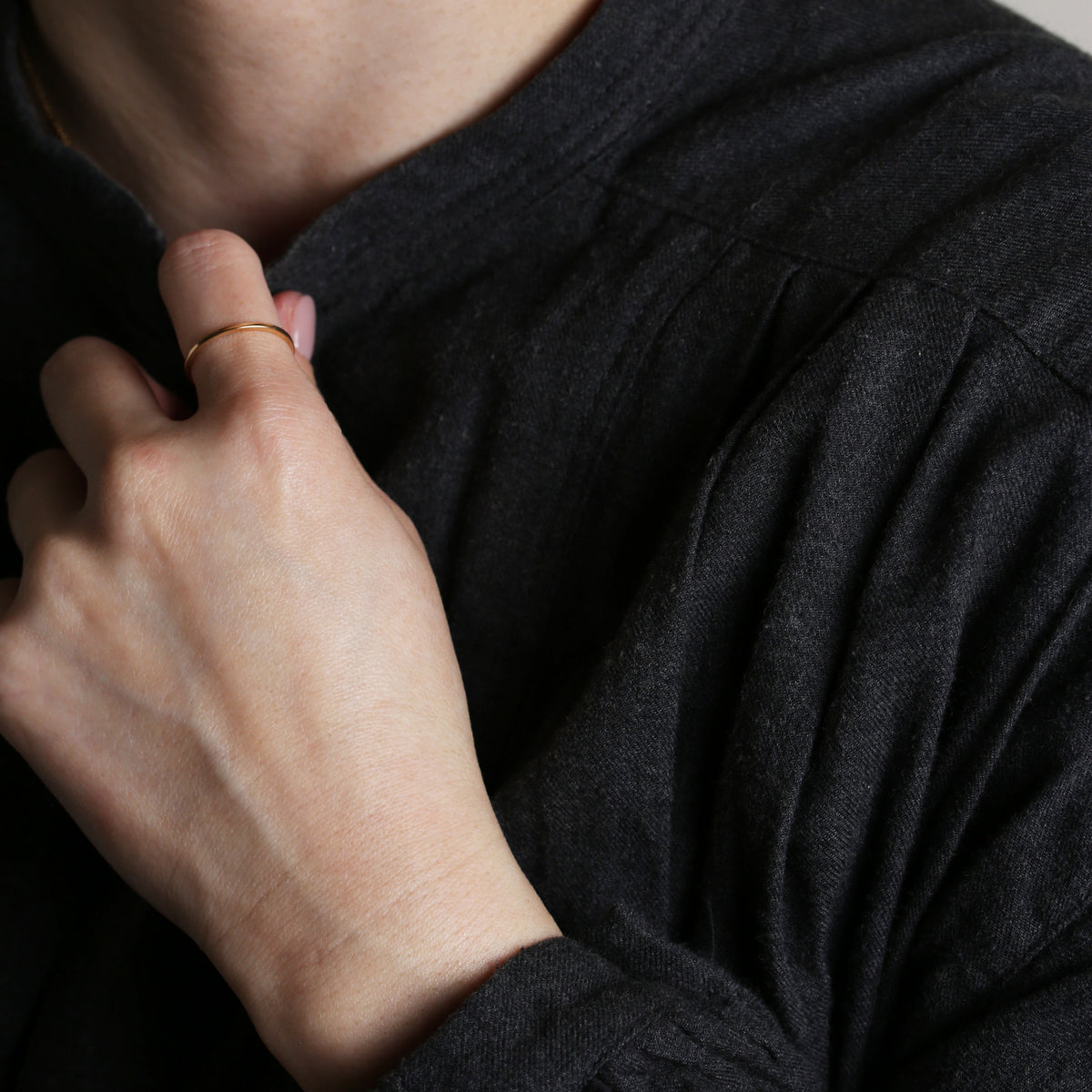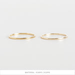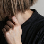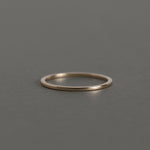 無駄を削ぎ落としたフラットなフォルムが、指先にそっと寄り添うように輝く極細リング。甲丸とはまた違う、凛としたミニマルさが魅力。細くても存在感があり、手元のラインをすっきりと整えてくれます。