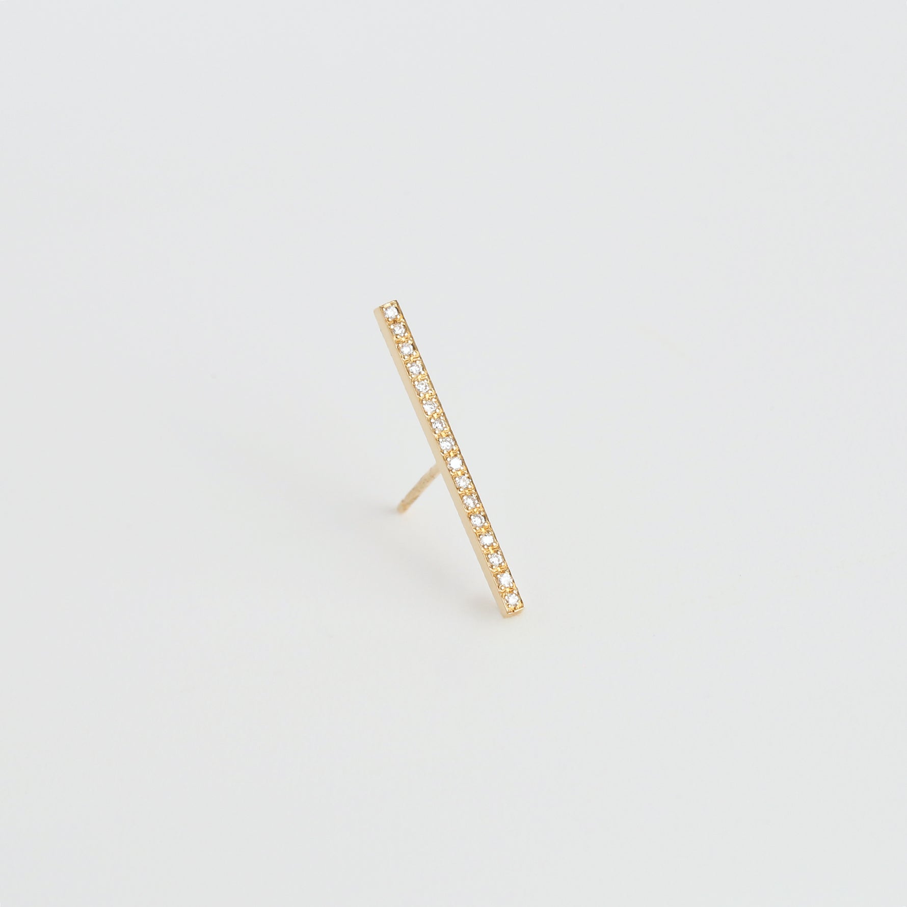 上質なダイヤモンドを直線に並べた、シンプルで洗練されたシングルラインピアス。ダイヤモンドとゴールドが織りなす凛とした輝きが、媚びない女性らしさを引き立て、顔まわりに上品な華やぎを添えます。