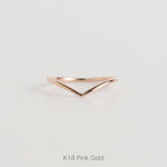 手元のスタイリングを広げるためにデザインされた繊細なVラインリング。なめらかなV字フォルムは大ぶりなリングとも自然に重なり合うよう計算されており、重ね着けのバランスを美しく整えてくれます。