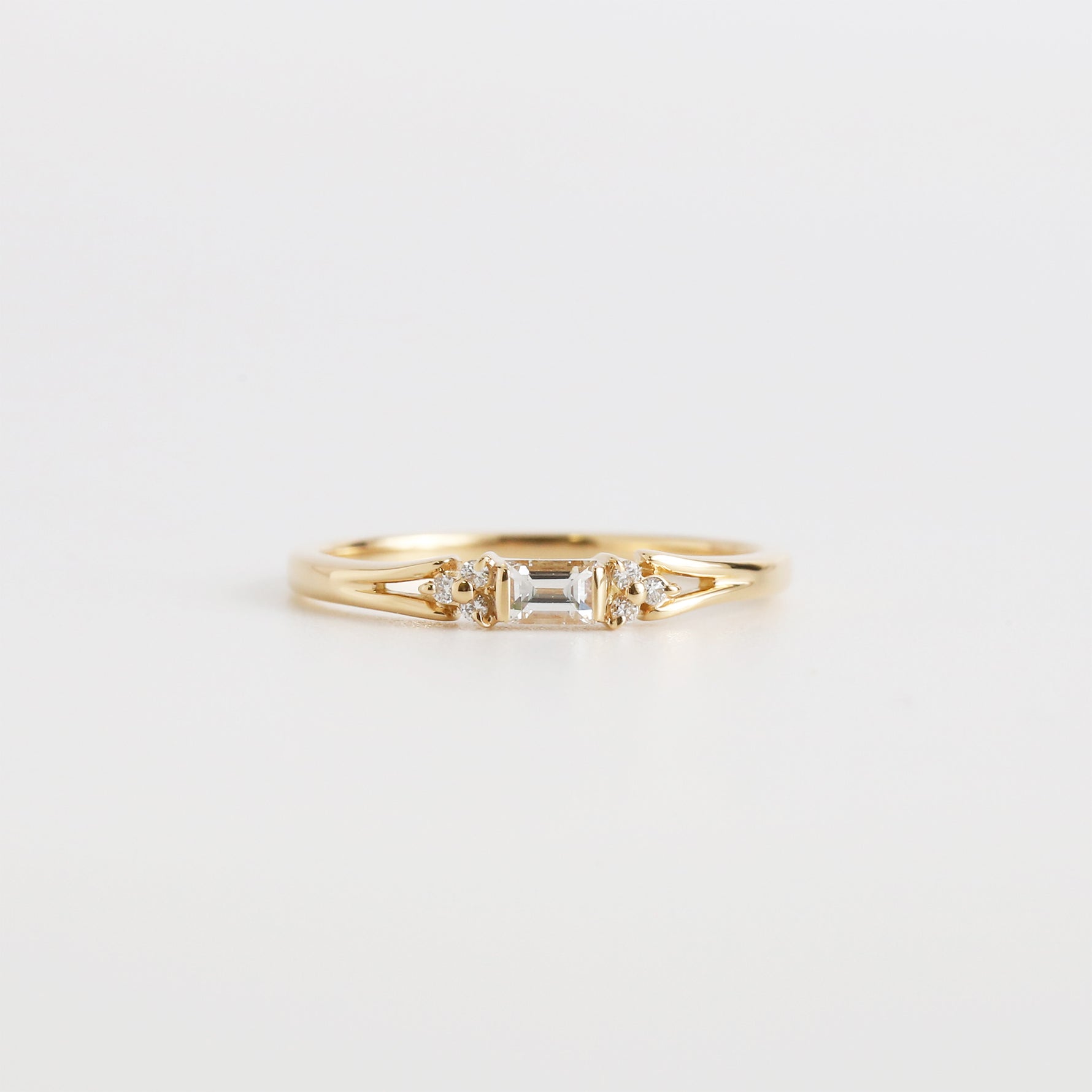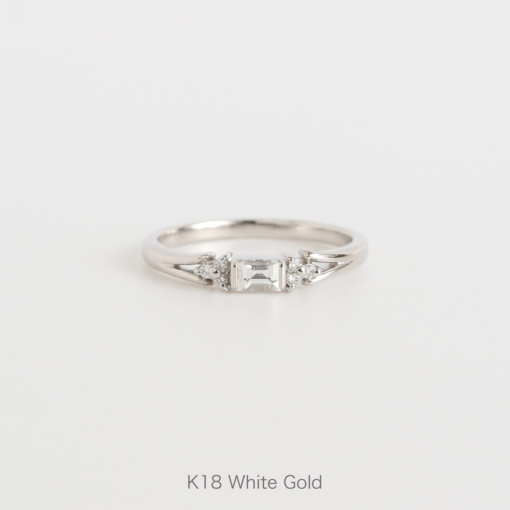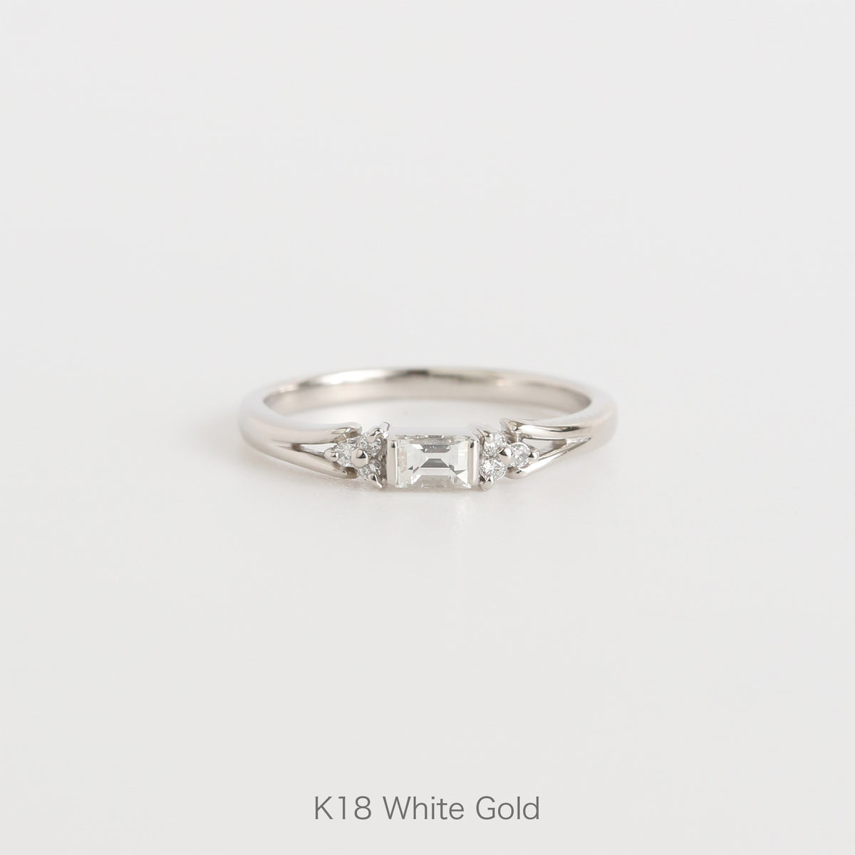 上品で大人らしい、今を生きるお洒落な女性たちへ捧げるバケットカットダイヤモンドリング。正面はもちろん、サイドからのデザインにもこだわり、華奢でいて上質、個性的でいて美しい佇まいに仕上げています。