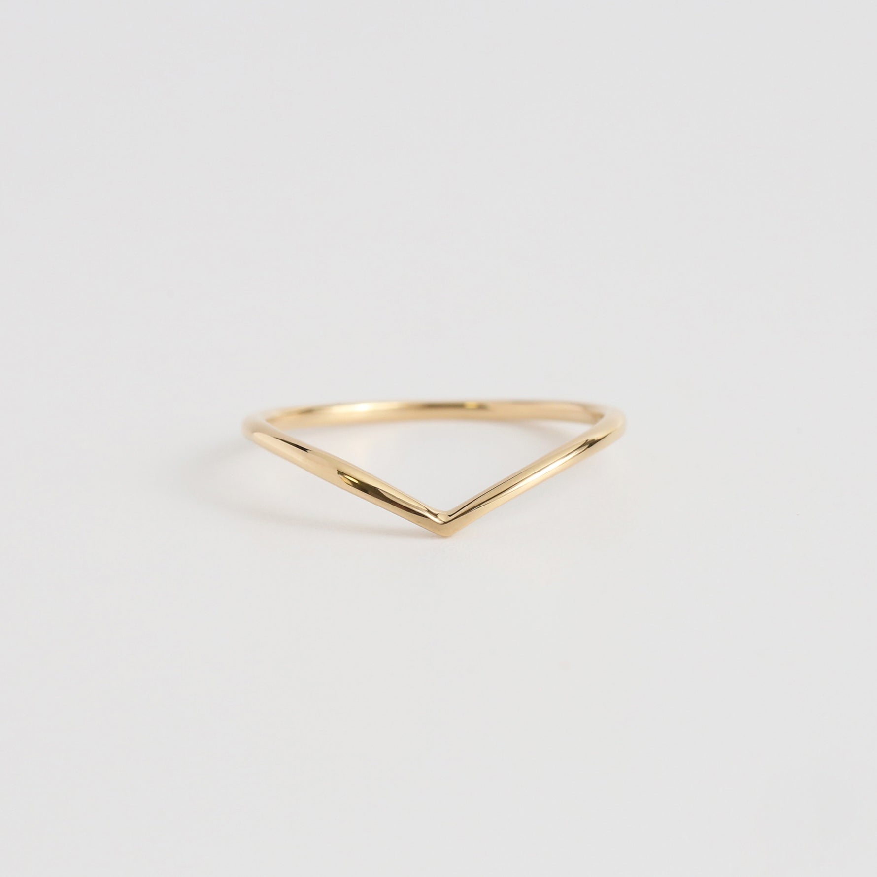 手元のスタイリングを広げるためにデザインされた繊細なVラインリング。なめらかなV字フォルムは大ぶりなリングとも自然に重なり合うよう計算されており、重ね着けのバランスを美しく整えてくれます。