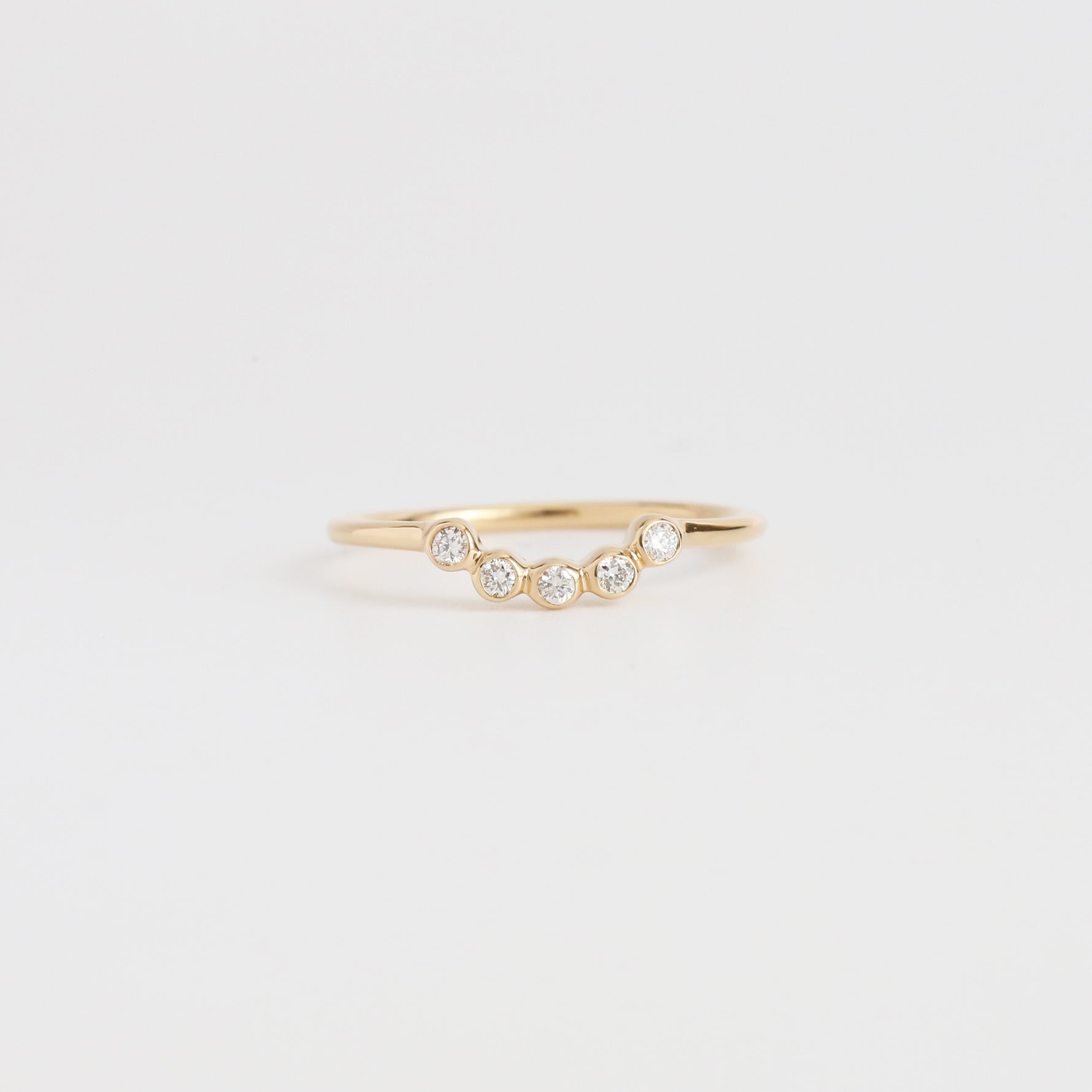 ほんのりと女性らしい"色香"が漂う柔らかなUラインのダイヤモンドリング。セレクトされる小さな5石のダイヤモンドはすべて厳選された"オーセンティック"な輝きを放つ上質モノ。