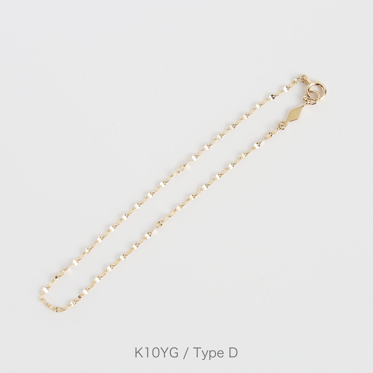 毎日の装いに華やかさを与え、スタイリングを纏め上げてくれるブレスレット。上質なゴールドチェーンだけでお作りしたシンプルなデザインで艶感を際立たせた上品な輝き。ブレスレットはさり気なくオシャレへのこだわりを表現できる魅力的なアイテム。絹糸を紡いだような繊細なデザインから、1本でも十分な存在感を放つデザインまで 幅広いラインナップをご用意いたしました。