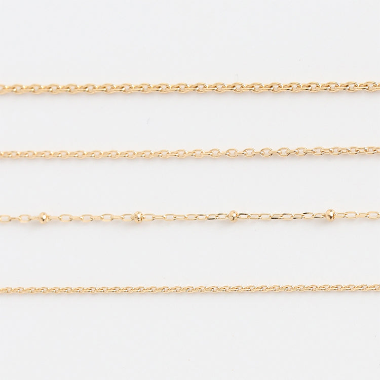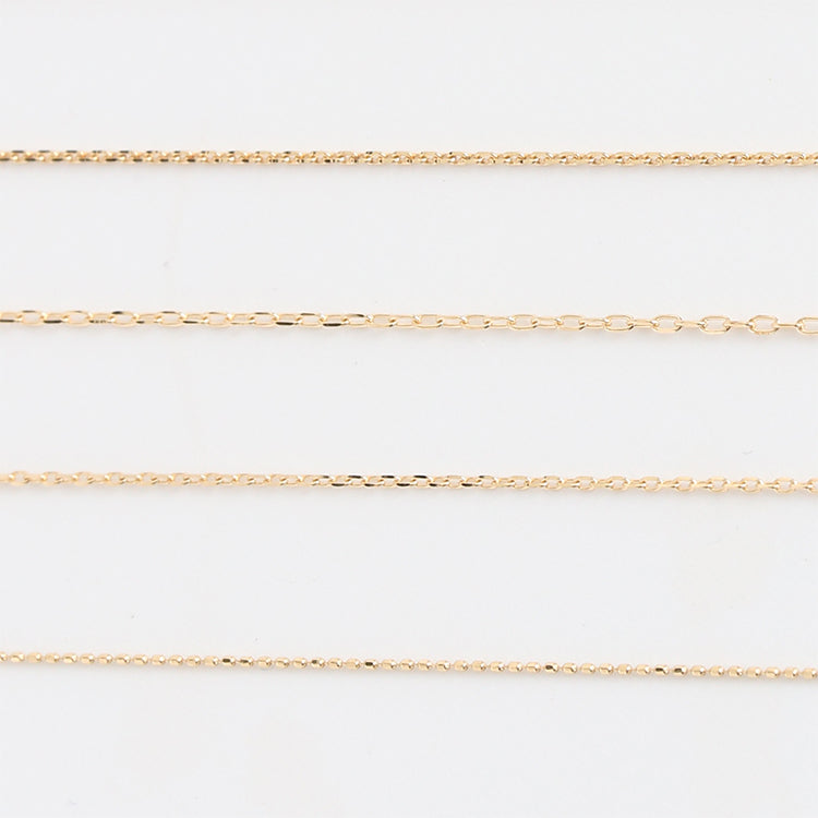 上からベーシックチェーン(カットアズキ/幅約1mm)、ナチュラルチェーン(カットアズキ/幅約1mm)、スレンダーチェーン(カットアズキ/幅約0.9mm)、カットボールチェーン(幅約0.6mm)