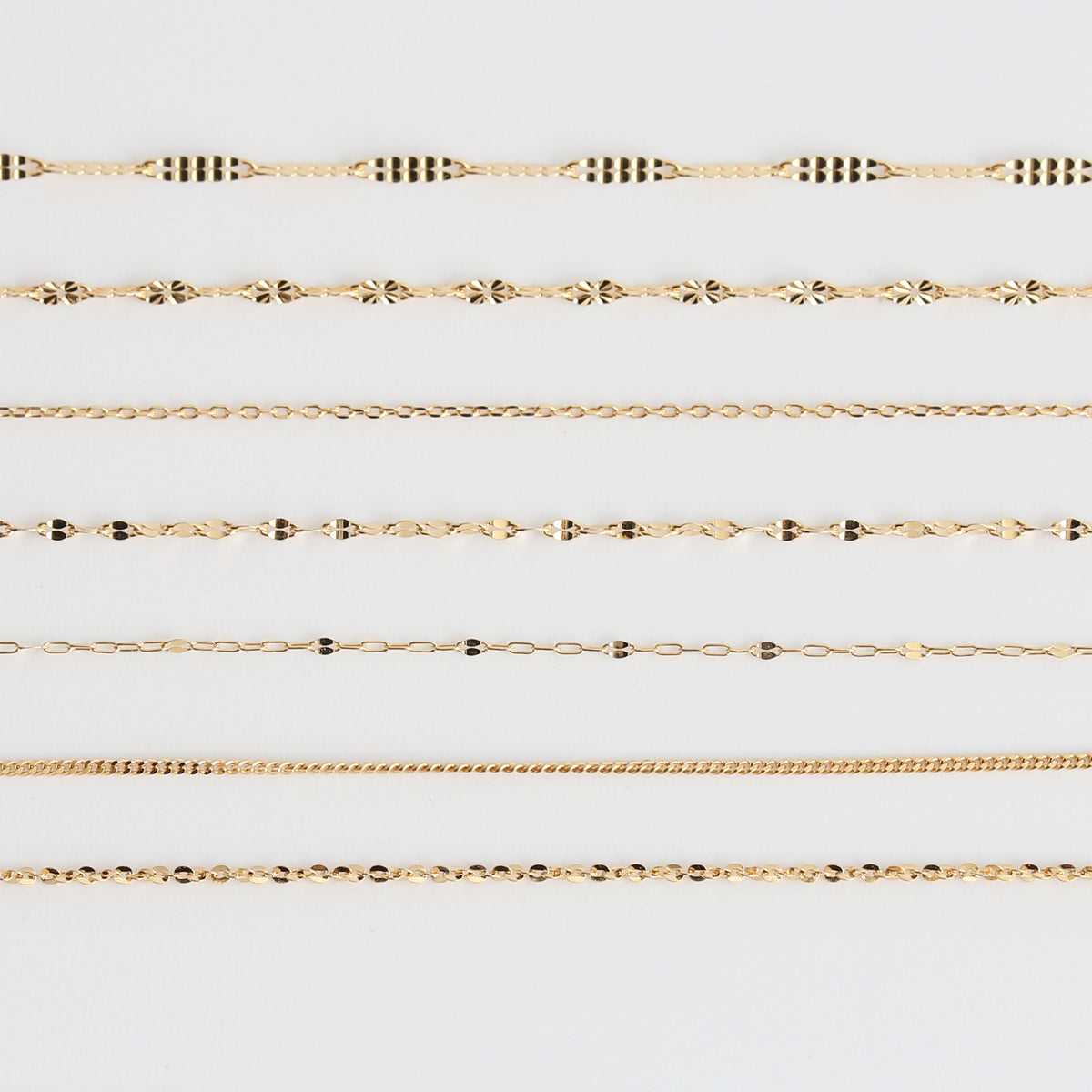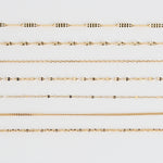 素肌に溶け込むような繊細なチェーンは柔らかな光を受けて足首を華奢に演出し、歩くたびの所作までも上品に。また、プレートやペタル、編み込みなど、ボリューム感のあるデザインは、光を大きく反射し、流れるような一筋の煌めきで確かな存在感を放ちます。