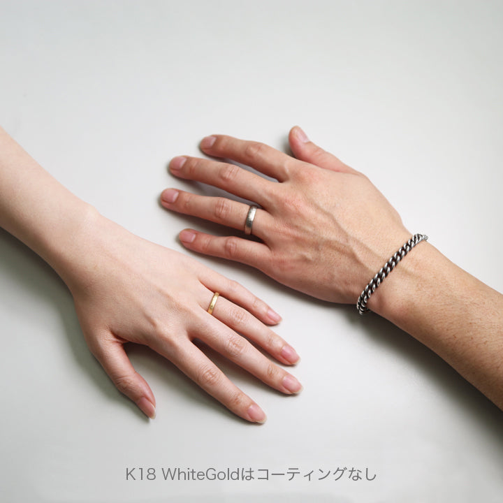 | 備 考 | ・K18ホワイトゴールドはコーティングなし仕上げ。コーティング希望/無料の方は備考欄にてお申し付けください。 ・つち目加工。手作業での加工となるため加工面は均一ではございません。 |