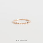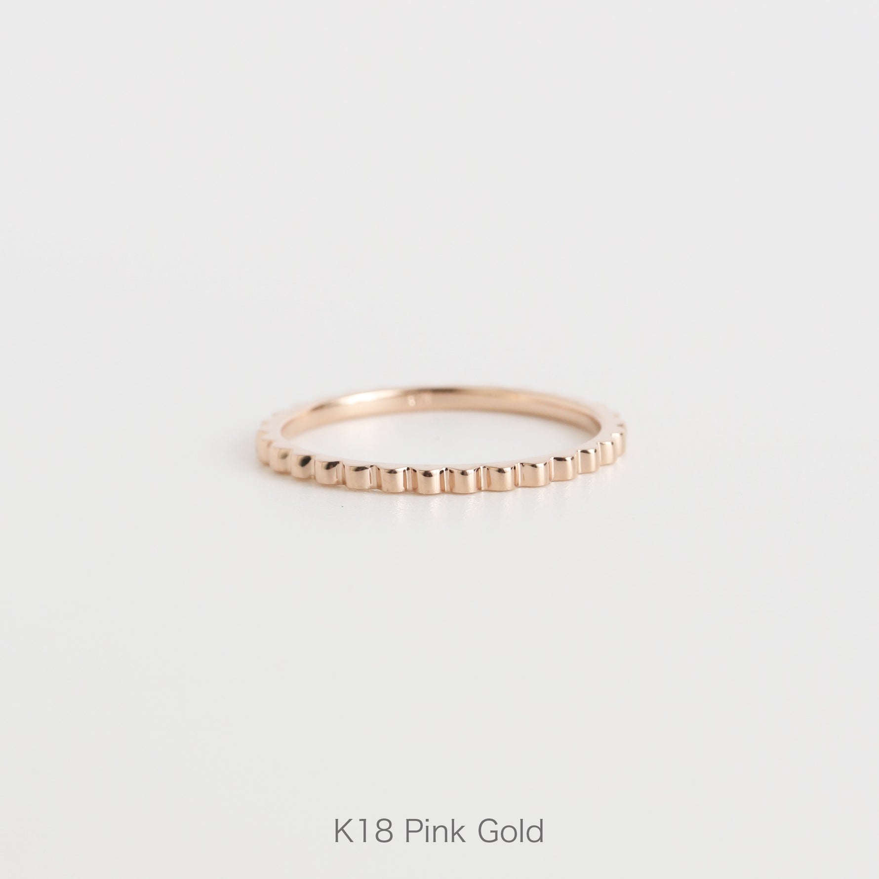 ゴールドに施された、間隔を大きく取ったユニークなミルグレインがポイントのリング。ありそうでなかなか出会えないデザインが大人の遊び心をくすぐります。