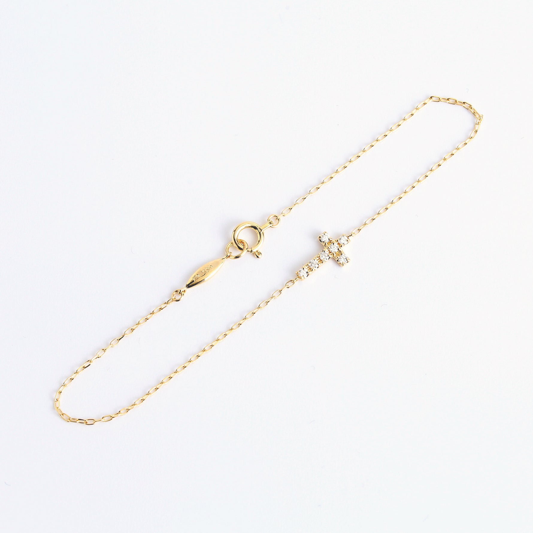 少し縦長にデザインされた小さなクロスシルエットに7石のダイヤモンドを丁寧にセッティングしたデザインブレスレット。ダイヤモンドは小さくても綺麗な物だけをセレクトしているので華奢なクロストップでも存在感はキチンとあります。
