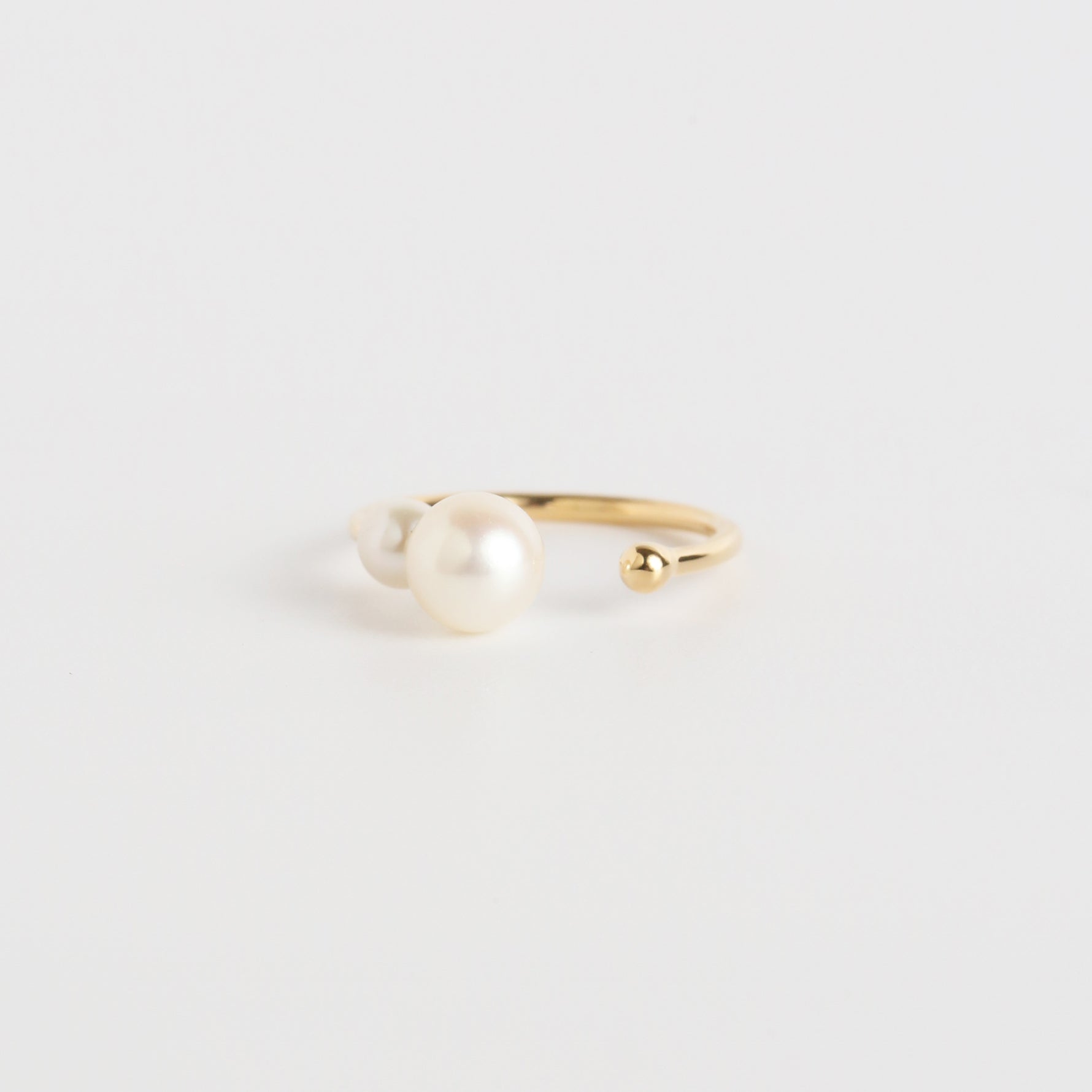 柔らかな光沢を放つ大小のパールを連ねたデザインです。シンプルの中にも一癖あるレイアウトが上品で優雅な雰囲気を放つパールをより引き立たせてくれる。肌馴染みもよく、さりげなくトレンド感をプラスしてくれます。